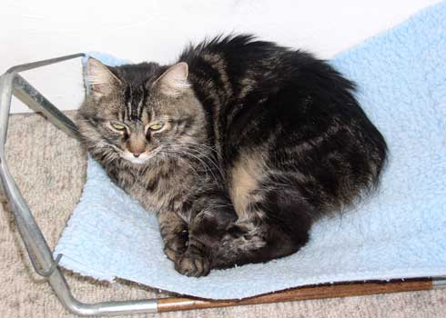 Looking regal on the bed. |