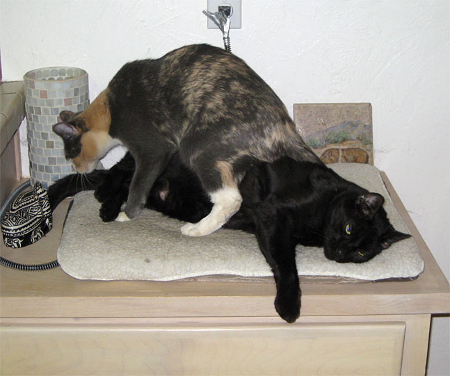 Being incredibly patient while Mosaic plays with his tail. |