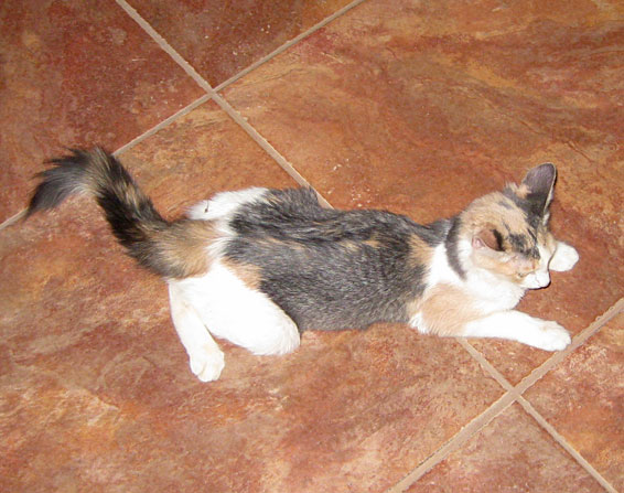 She coordinates nicely with the double-decker cat hammock. |